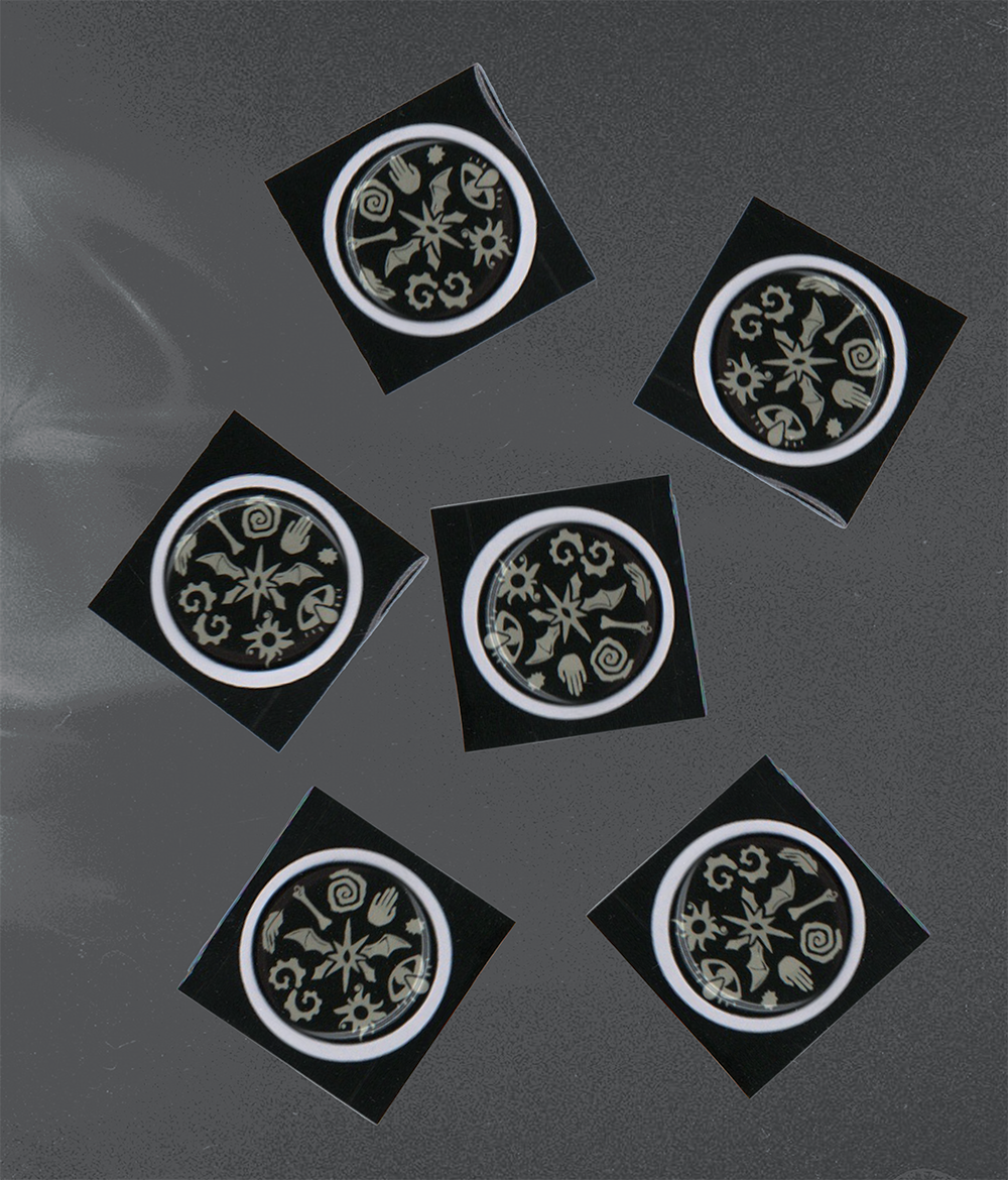 Стикер с принтом «Некротики» на чёрном фоне.