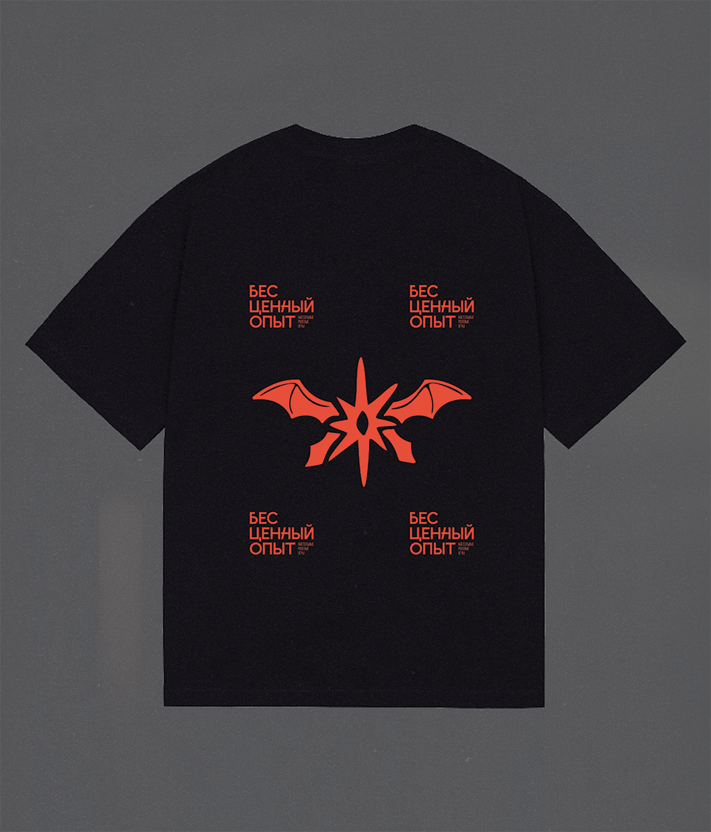 Оверсайз футболка с красным принтом с символом Звездокрыла на спине.