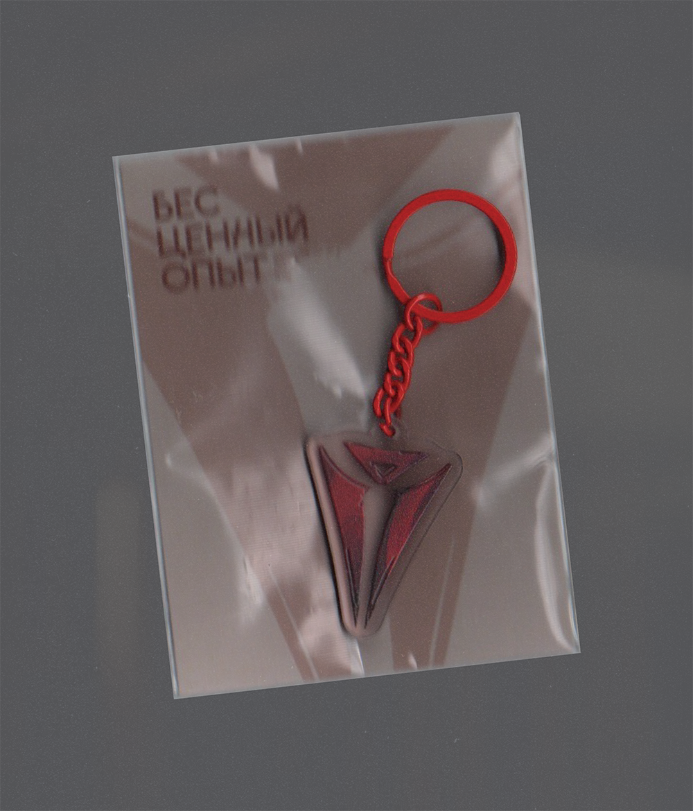 Брелок с символом Асмодея и красным металлическим колечком.