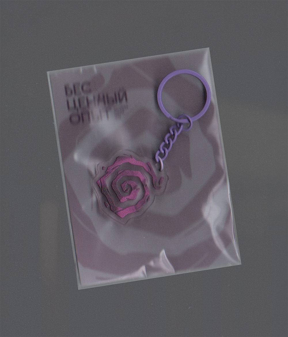 Брелок с символом Тариздуна и фиолетовым металлическим колечком.