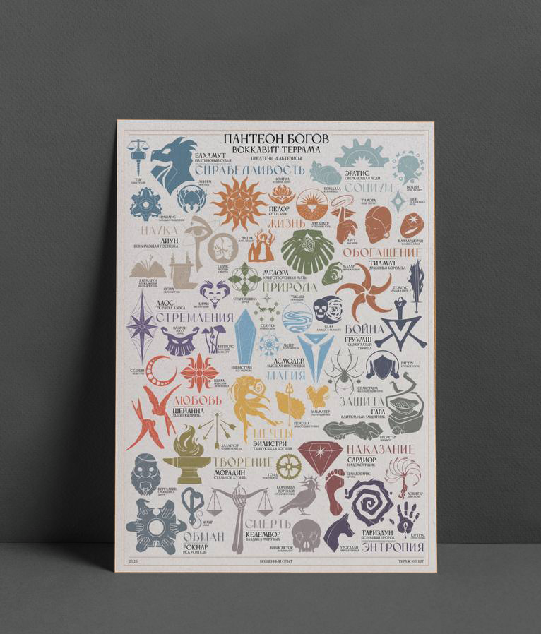 Плакат с полным пантеоном богов Воккавит Террама — авторского мира нашего канала.